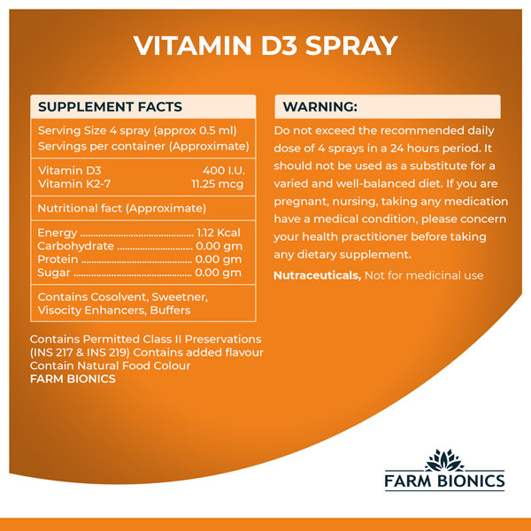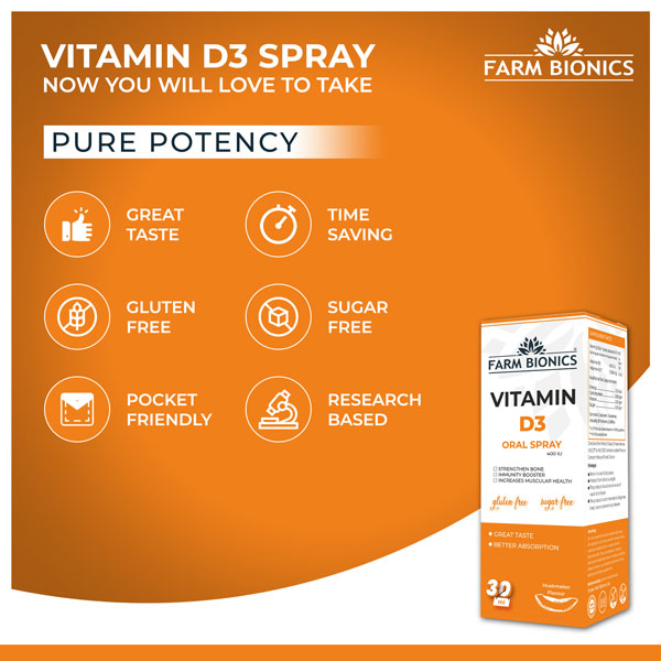 THE SUNSHINE VITAMIN – Vitamin D3 is oftentimes called “the sunshine vitamin” because it is produced in your skin in response to sunlight. FARM BIONICS Daily Vitamin D3 has been shown to provide adequate levels of the vitamin in the body as well. It also can promote bone and immune health.
